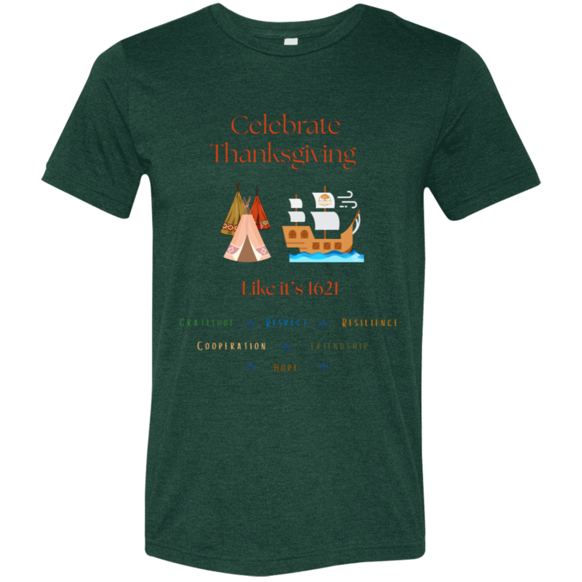 Thanksgiving in 1621 was a time of great joy and gratitude shared by the Pilgrims and their Pokanoket allies. Share the true spirit of Thanksgiving with this festive item
