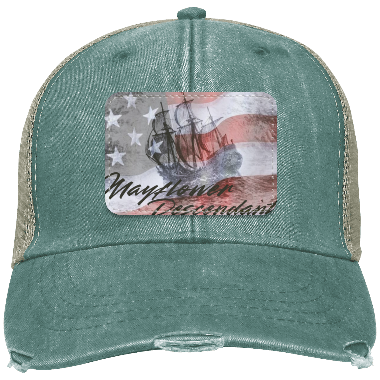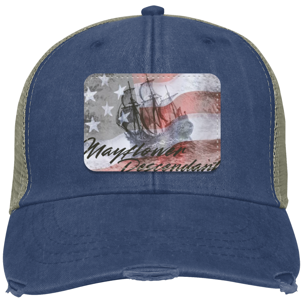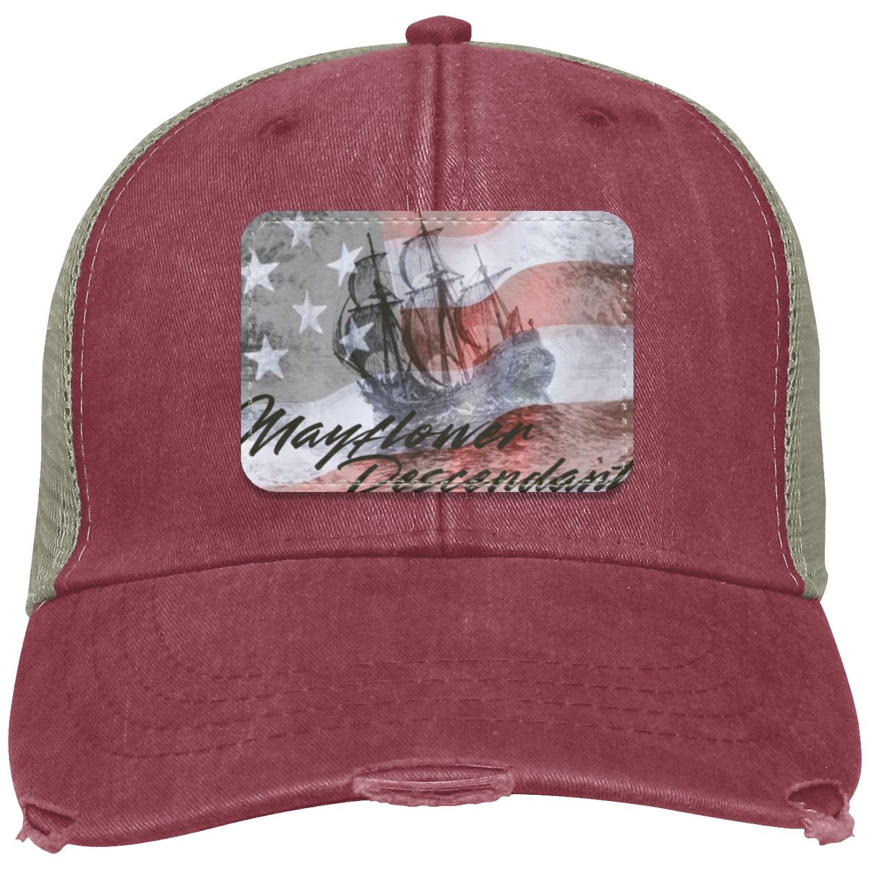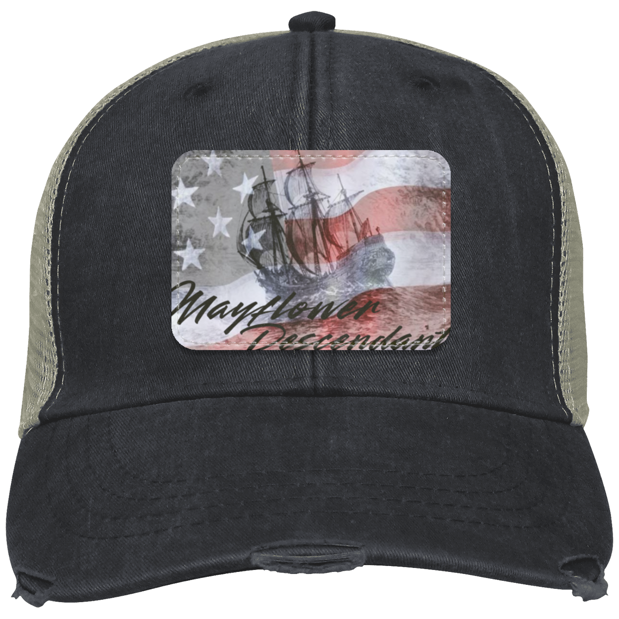 - Distressed torn visor, cotton twill sweatband; four-row stitching on bill